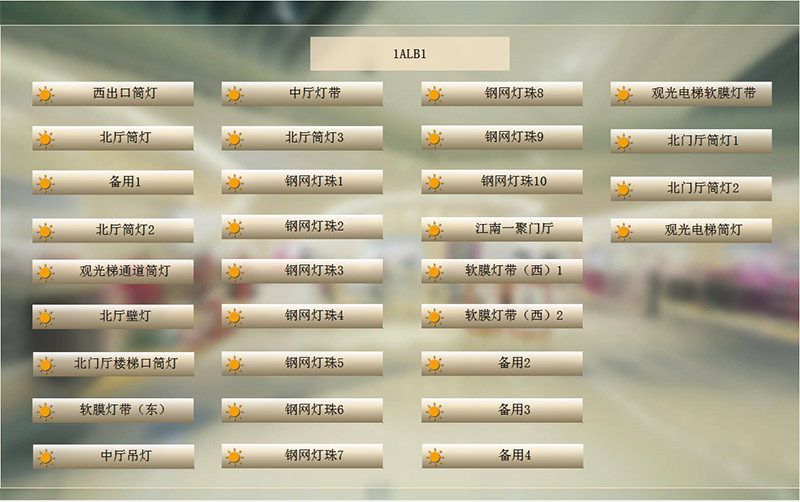 本監(jiān)控系統(tǒng)主要實現(xiàn)寧夏榮恒星星小鎮(zhèn)的公共區(qū)域照明回路的遠程控制。該系統(tǒng)總計有13臺ASL100-S12/16和5臺ASL100-S8/16,現(xiàn)場所有智能照明控制模塊采用星型的方式接在一起,采用KNX總線通訊連接至控制室處的智能照明觸摸屏,從而完成整個商場的智能照明控制。 ??
