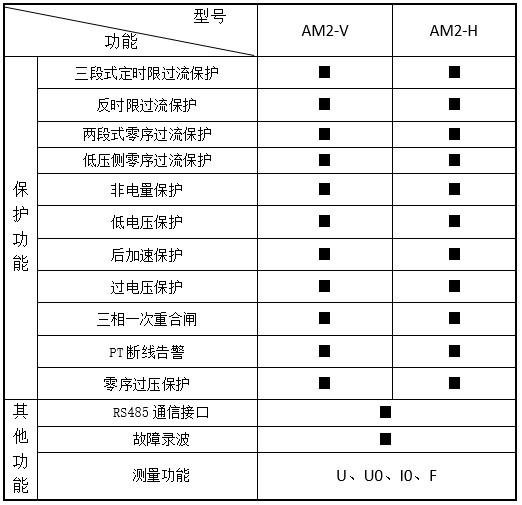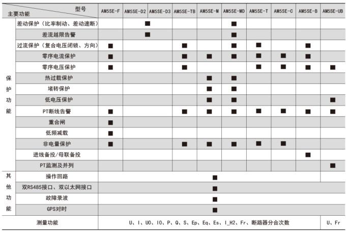 注:√表示具備此功能,■表示可選功能, 空白表示無此功能。