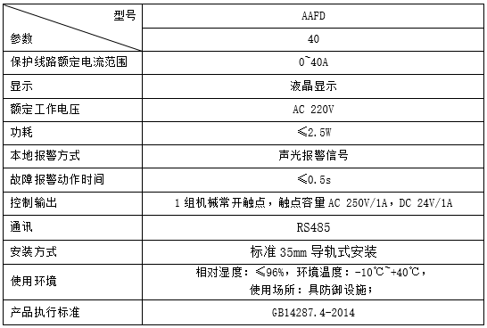 技術(shù)要求:故障電弧報(bào)警,AC 40A以下的負(fù)載