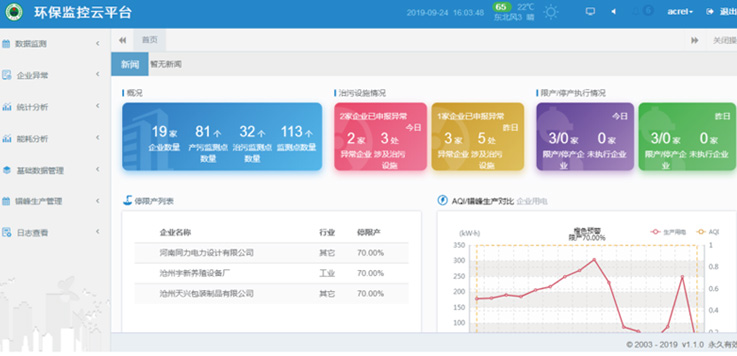 通過關(guān)聯(lián)分析、超限分析、啟停時(shí)間分析,及時(shí)發(fā)現(xiàn)環(huán)保治理設(shè)備未開啟、異常關(guān)閉及減速、空轉(zhuǎn)、降頻等異常情況,同時(shí)通過數(shù)據(jù)分析還可以實(shí)時(shí)監(jiān)控限產(chǎn)和停產(chǎn)整治企業(yè)運(yùn)行狀態(tài),如圖所示: