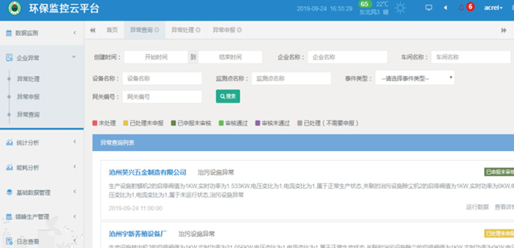 AcrelCloud-3000環(huán)保用電監(jiān)管云平臺(tái)支持Android、ios系統(tǒng)APP,環(huán)保局/企業(yè)用戶能根據(jù)自己的需求使用對(duì)應(yīng)版本的APP,可以進(jìn)行 行業(yè)/企業(yè)查詢、報(bào)警、故障查詢,實(shí)時(shí)監(jiān)控?cái)?shù)據(jù)查詢,分閘操作,探測(cè)器詳細(xì)信息查詢等功能。