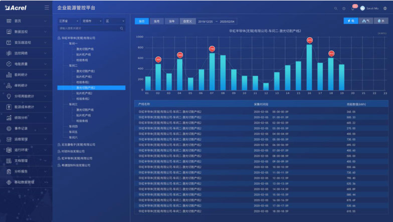 以年、月、日對(duì)企業(yè)的能源利用情況、線(xiàn)路損耗情況、設(shè)備運(yùn)行情況、運(yùn)維情況等進(jìn)行全面的統(tǒng)計(jì)分析,讓用戶(hù)全面了解系統(tǒng)的運(yùn)行情況,并為用戶(hù)提供數(shù)據(jù)基礎(chǔ),方便用戶(hù)發(fā)現(xiàn)設(shè)備異常,從而找出改善點(diǎn),以及針對(duì)用能情況挖掘節(jié)能潛力。
