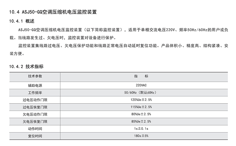 ASJ50-GQ空調(diào)壓縮機(jī)電壓監(jiān)控裝置