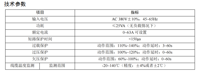 ■ 配電線纜溫度監(jiān)測功能。當被監(jiān)測線纜溫度超過報警設(shè)定值時,保護器發(fā)出聲光報警信號,可預先設(shè)置是否啟動限流保護。