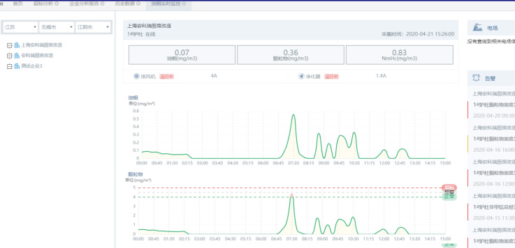 對油煙監(jiān)測設(shè)備制定濾芯清洗/更換的維護計劃,在設(shè)定的期限超期后,系統(tǒng)會產(chǎn)生對應(yīng)的報警,來提醒用戶對采 集濾芯進行更換或者清洗操作。