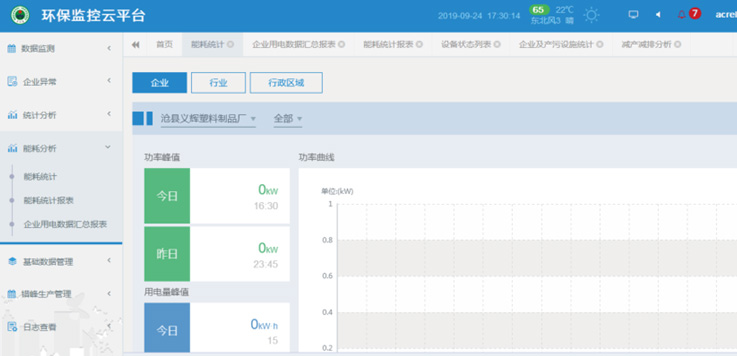 平臺(tái)首頁顯示企業(yè)概況,用電統(tǒng)計(jì),產(chǎn)污設(shè)施運(yùn)行柱狀圖,治污設(shè)施運(yùn)行柱狀圖,如圖所示: