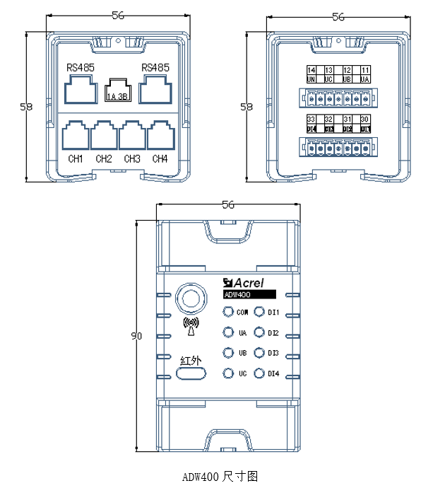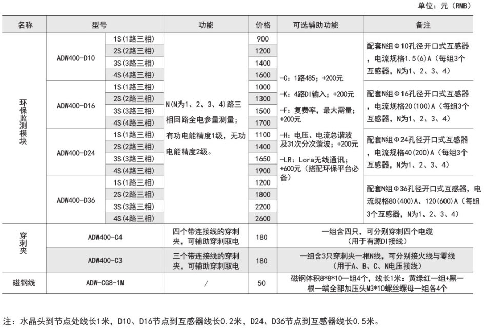 ADW400環(huán)保監(jiān)測(cè)模塊主要用于計(jì)量低壓網(wǎng)絡(luò)的三相有功電能,同時(shí)可選擇四個(gè)回路的電流輸入,具有RS485通訊和470MHz無(wú)線通訊功能,方便用戶進(jìn)行用電監(jiān)測(cè)、集抄和管理。可靈活安裝于配電箱內(nèi),實(shí)現(xiàn)對(duì)不同區(qū)域和不同負(fù)荷的分項(xiàng)電能計(jì)量,統(tǒng)計(jì)和分析。